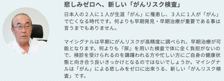 事業:がん領域を中⼼とした疾患の早期発⾒や個別化医療、次世代検査研究・開発、がんリスク検査 miSignal®︎(マイシグナル)の提供