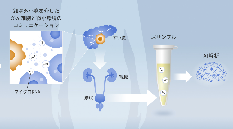 ・新しい尿中マイクロRNA検査ですい臓がんを検出:尿中細胞外小胞由来のマイクロRNAを濃縮してから解析することで、すい臓がんの高精度な検出を可能にしました。