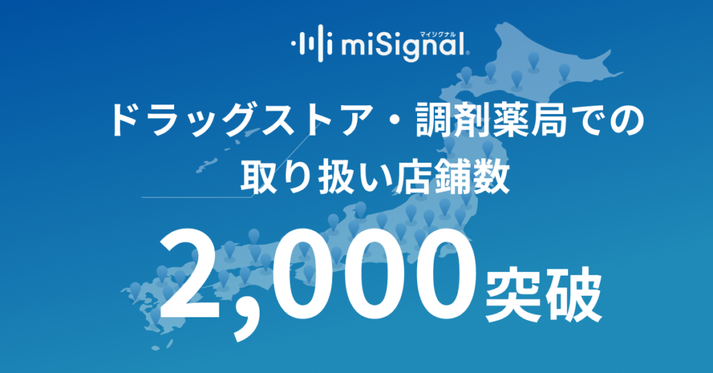 「マイシグナル®︎」は2023年12月よりドラッグストア・調剤薬局での取り扱いを開始しいたしました。昨年より急速に全国のドラッグストア・調剤薬局における取り扱い店舗を拡大し、約1年半で取り扱い件数が2,000店舗を突破いたしました。さらに、医療機器カテゴリにおける月間売上で1位を記録するなど、販売実績も着実に伸長しています。