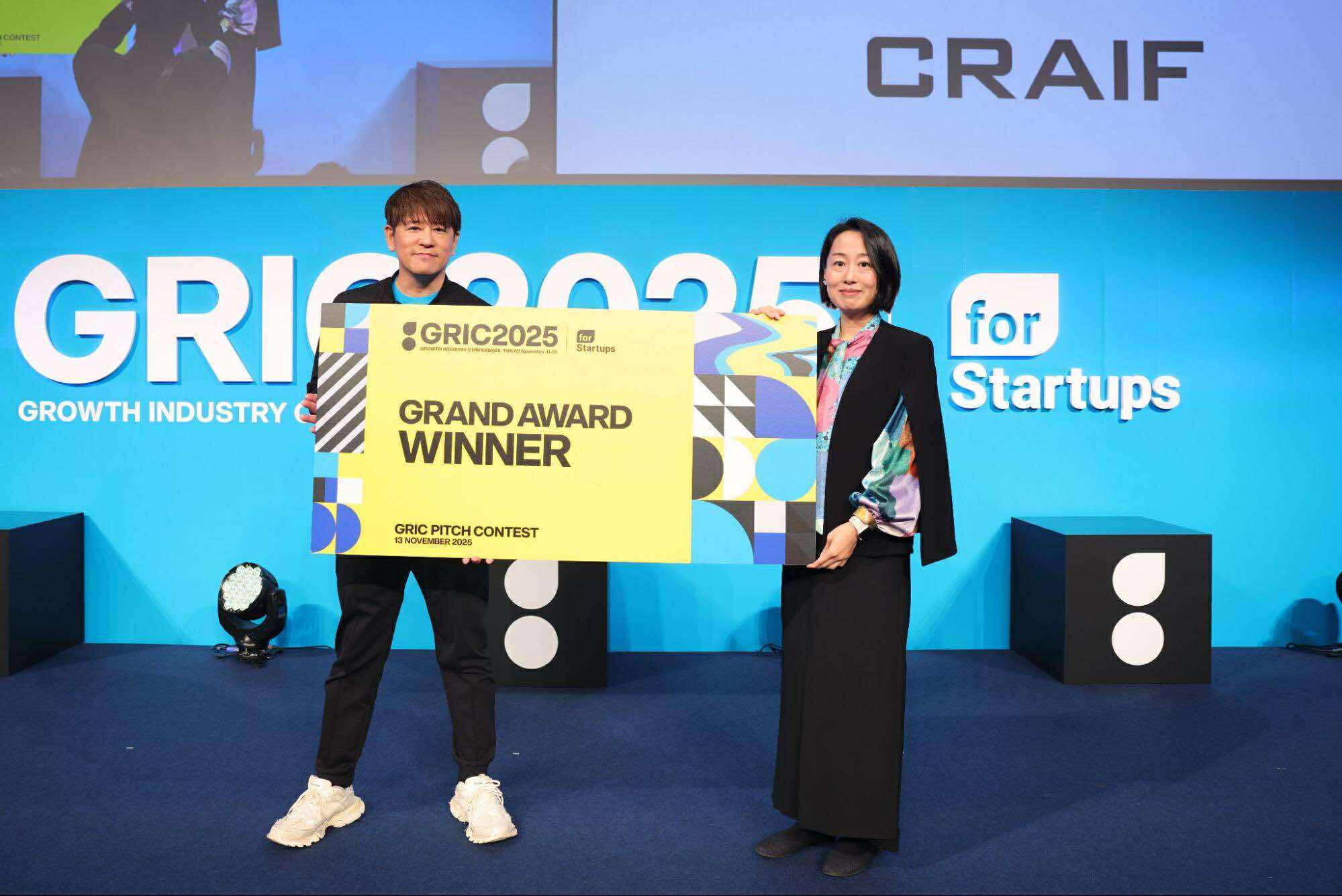 スタートアップが世界へ挑戦する機会を提供するピッチコンテスト。「CLIMATE TECH & RESILIENCE」、「FRONTIER TECH」、「UPRISING DIGITAL」3つのテーマに分かれ、グローバルでの成功の可能性を秘めたスタートアップ18社が登壇。国内外から参加した120名以上の審査員による評価が行われました。詳細はこちら12,000件!国内最大級「GRIC2025」開催レポート 「GRIC PITCH」GRAND AWARDは、Craif株式会社